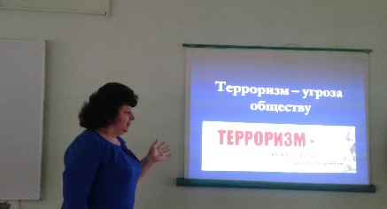Школьников собрали для того, чтобы в очередной раз затронуть злободневную тему терроризма и призвать к бдительности и внимательности к посторонним людям и предметам. Начала лекцию директор школы, учитель истории и обществознания Стародымова Ирина Сергеевна, которая раскрыла сущность понятий терроризма и экстремизма, представила присутствующим наглядный материал: «Терроризм», «террористы», «экстремизм» – слова, которые практически ежедневно появляются в средствах массовой информации, порождая беспокойство и страх наших граждан за свое настоящее и будущее, за свои права и свободы, которые, гарантированны нам Конституцией Российской Федерации. Экстремизм и терроризм в любых формах своих проявлений превратились в одну из самых опасных проблем, с которыми человечество вошло в XXI столетие.